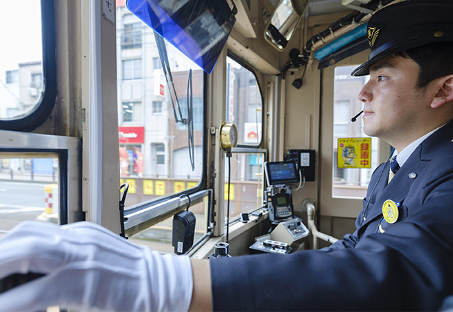 父が運転士をしている為、幼い頃より憧れを抱いており入社しました。 私たち運転士は、お客様を安心・安全・快適に目的地まで送り届ける事が使命です。 様々なお客様にご乗車頂きますので、聞き取りやすいアナウンス、スムーズな運行を心がけ ています。 危険予測が功を奏し事故を防ぐことが出来た時や、お客様が降車される際に「ありがとう」 の言葉を頂いたときはやりがいを感じます。